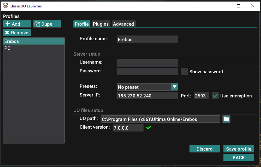 Descarga nuestro cliente personalizado de Erebos o usa el cliente clásico de UO con nuestros archivos.